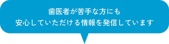 歯科医院に苦手意識を感じ、なかなか通院に気乗りしない方も多いのではないでしょうか。当院は恐怖や不安を覚えることなく、気兼ねなく来院していただけるような歯科医院でありたいと思っています。