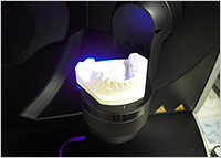 最先端の3D光学カメラを使用して患部を撮影(スキャン)し、患部の歯列をモニター上に再現します。その後コンピュータの3D画面上にて修復物を設計し、ミリングマシンがデータをもとに作製します。